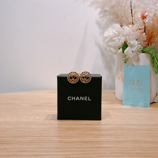Chanel Circle CC Logo With Hearts Earrings ABA273 [New]