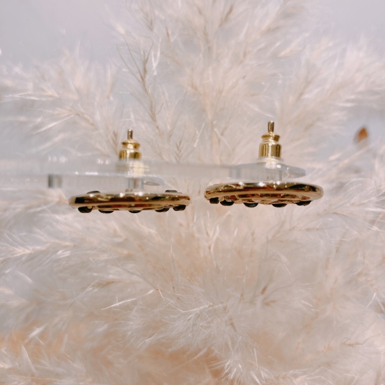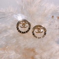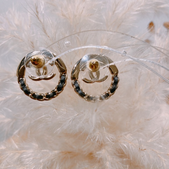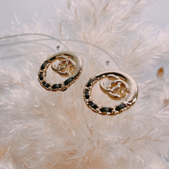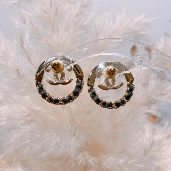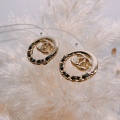 Chanel Leather And Chain Gold CC Logo Round Earrings [New]
