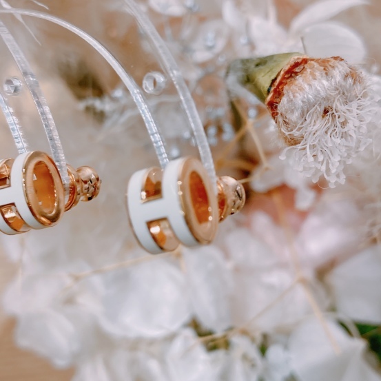 Hermes Mini Pop H Earrings Blanc x RGHW [New]