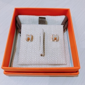 Hermes Mini Pop H Earrings Marron Glace x GHW [New]
