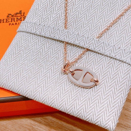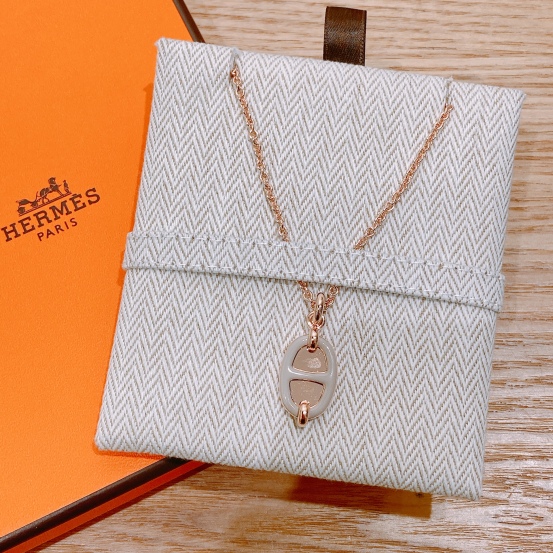 Hermes Mini Maillon Necklace Marron Glacé x RGHW [New]