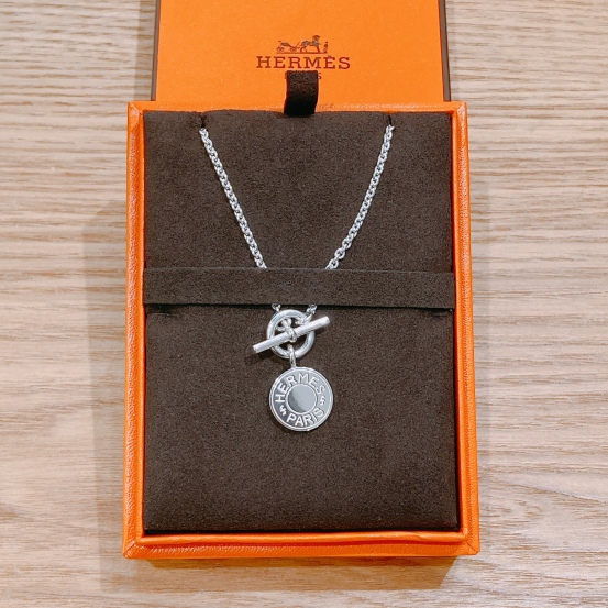 Hermes Amulettes H Ex-Libris Pendant Necklace 925 Silver[New]