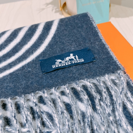 Hermes Any Mors Scarf Cashmere Navy 140 x 30cm [New]