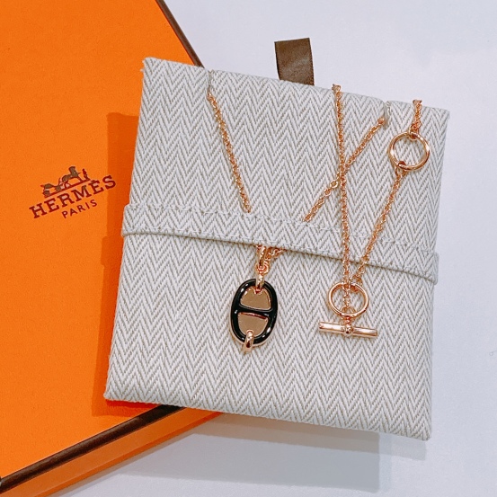 Hermes Mini Maillon Pendant Necklace Black x RGHW[New]