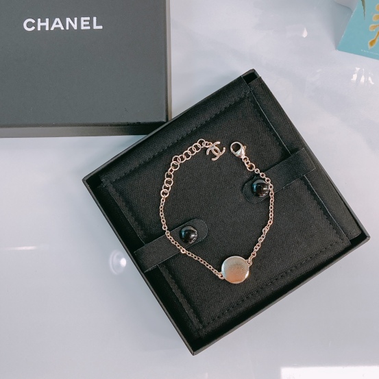 Chanel Circle CC Logo Black x RGHW Bracelet [New]
