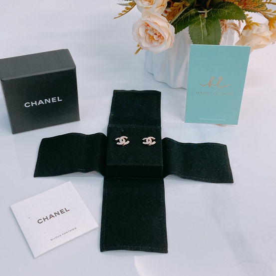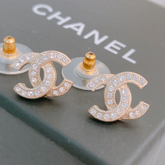 Chanel Classic 1.2 cm CC Logo Earrings Crystal x GHW [Pre-Owned]