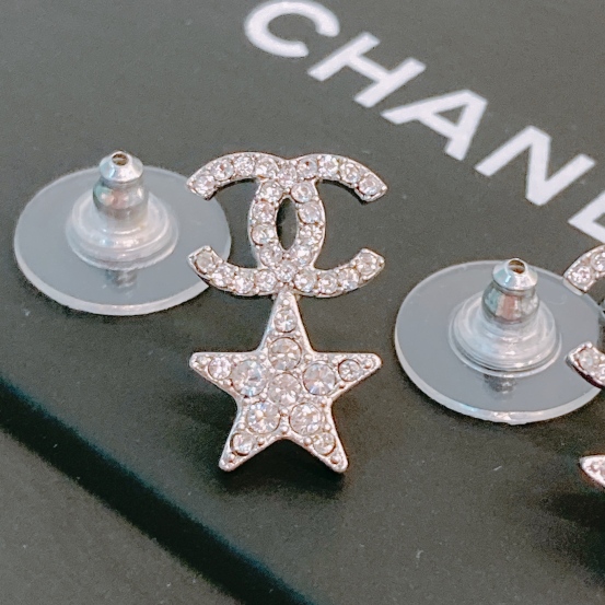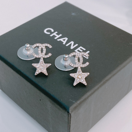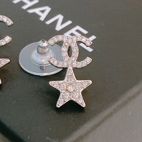 Chanel Star With CC Logo Earrings Crystal x PHW [Pre-Owned]