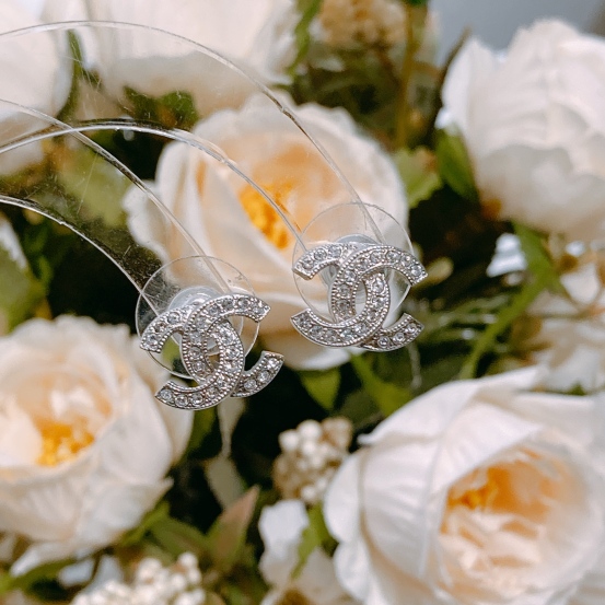 Chanel Classic CC Logo 1.2cm Earrings Crystal x PHW[New]