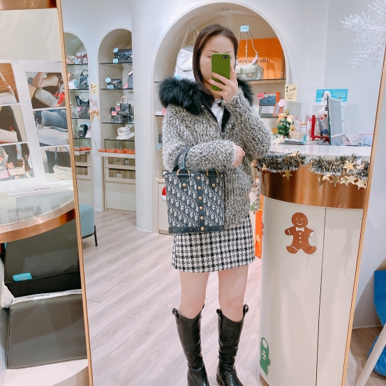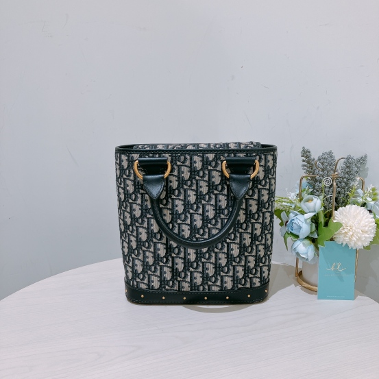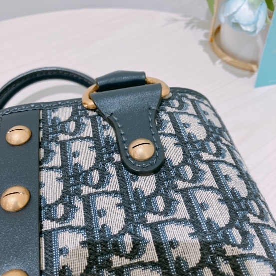 Christian Dior Obique Studded DiorAvenue Top Handle Crossbody Bag Blue X GHW [Pre-Owned]