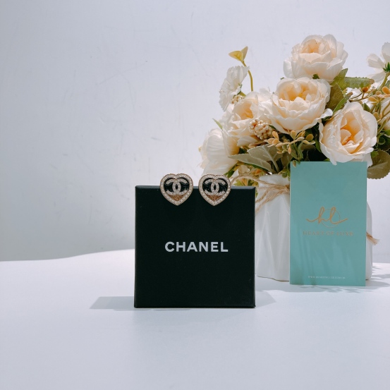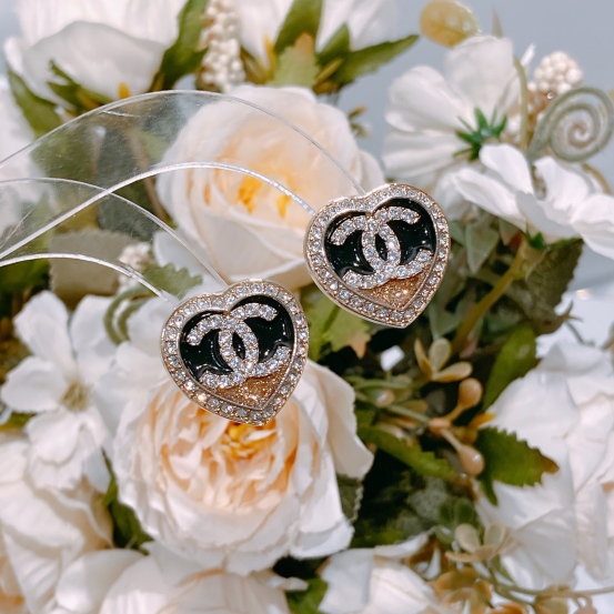 Chanel Heart With CC Earrings Black/Gold x Crystal[New]