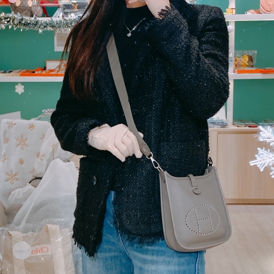 Hermes Mini Evelyne TC 8F Etain x PHW [Pre-Owned]