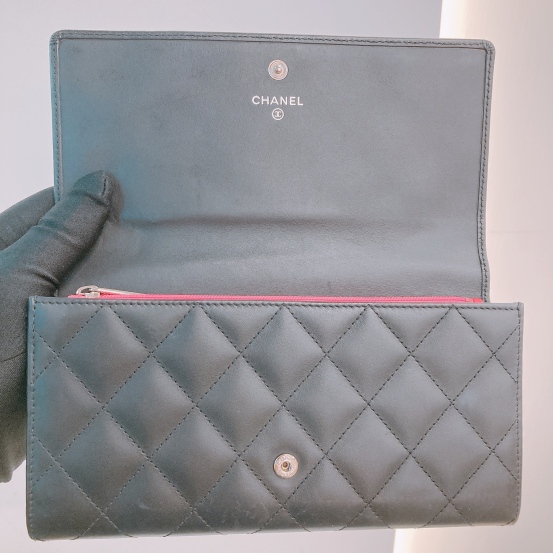 Chanel Cambon Long Wallet Calfskin Black x Pink [Pre-Owned]
