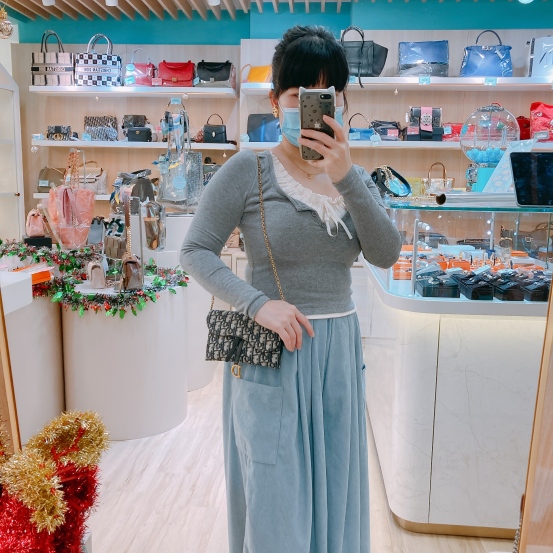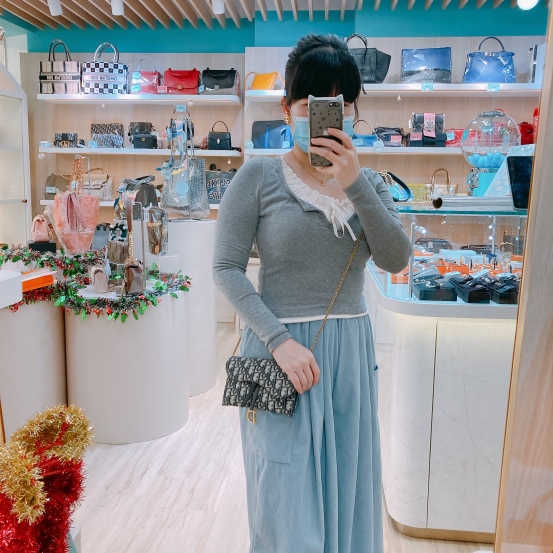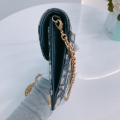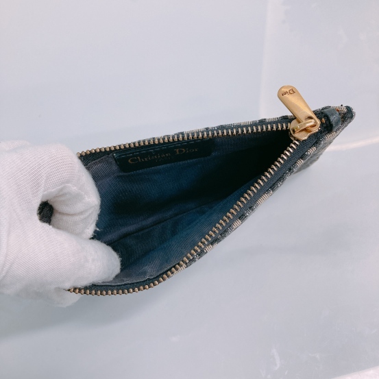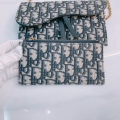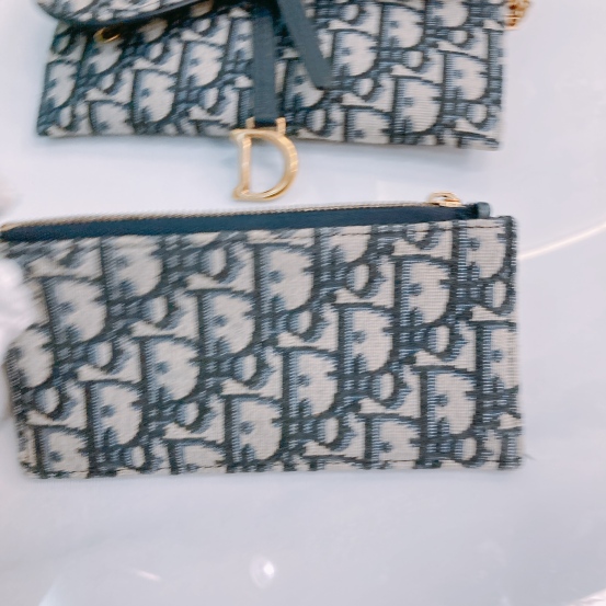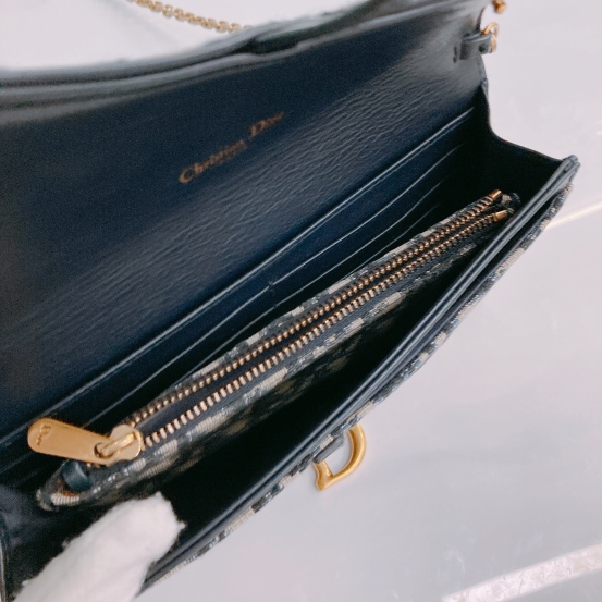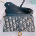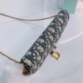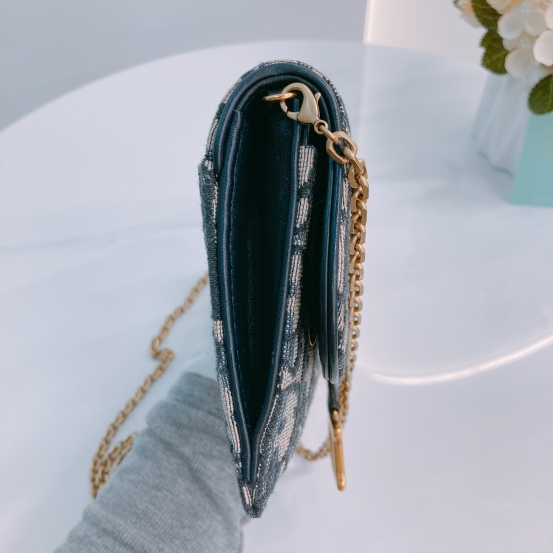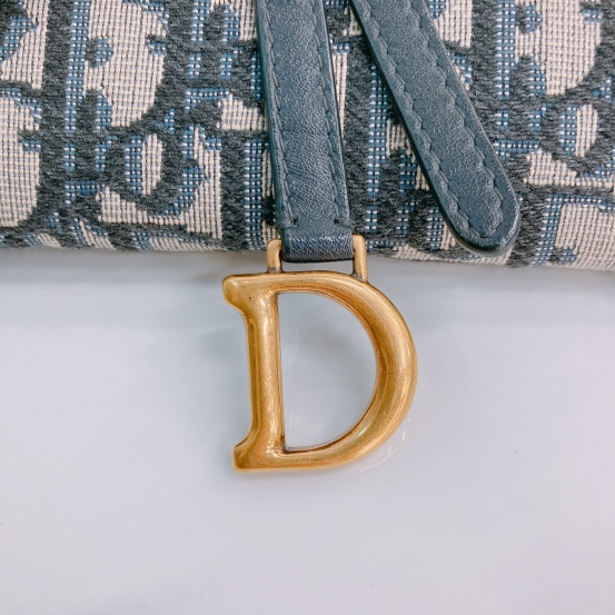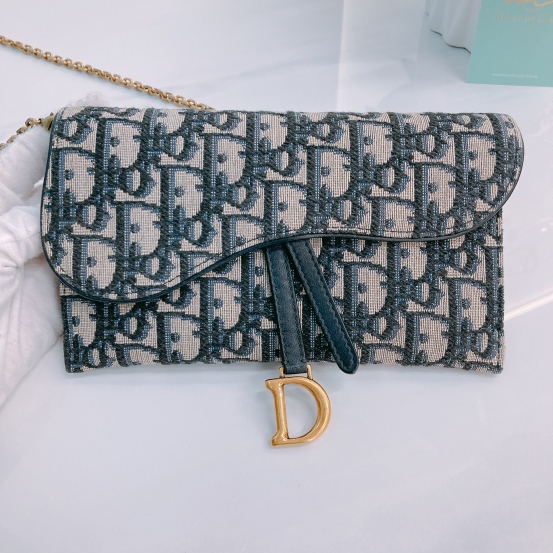 Christian Dior Saddle Pouch With Chain Small Oblique Jacquard Blue x GHW [Pre-Owned]