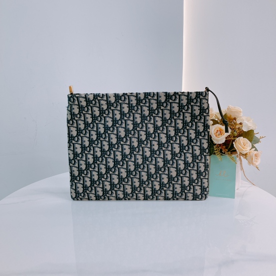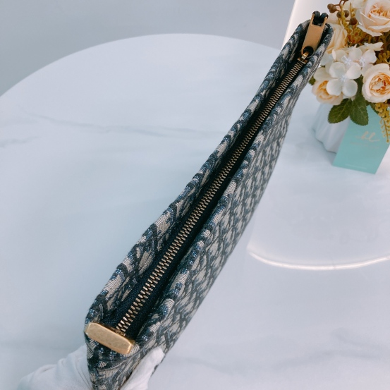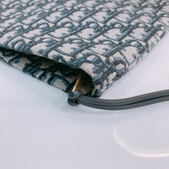 Christian Dior Pouch 29cm With Zipper Oblique Jacquard Blue x GHW [Unused]
