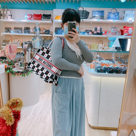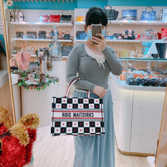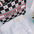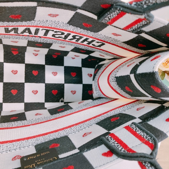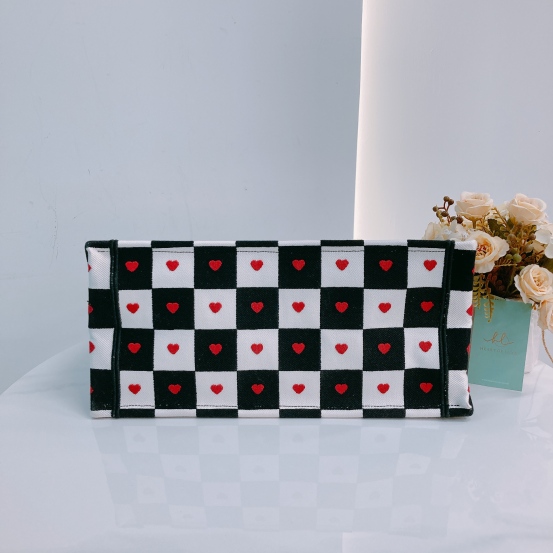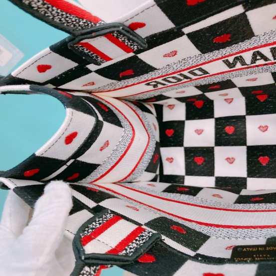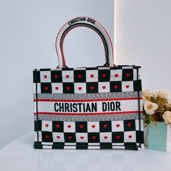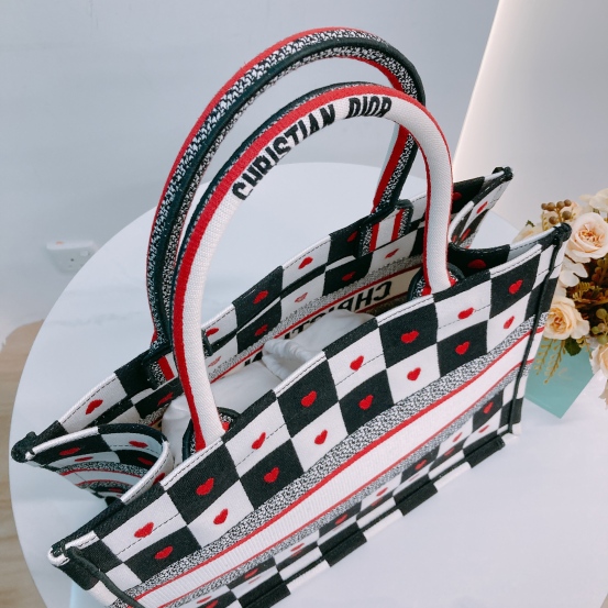 Christian Dior Book Tote Dioramour D-Chess Medium Canvas Black x White x Red [Pre-Owned]