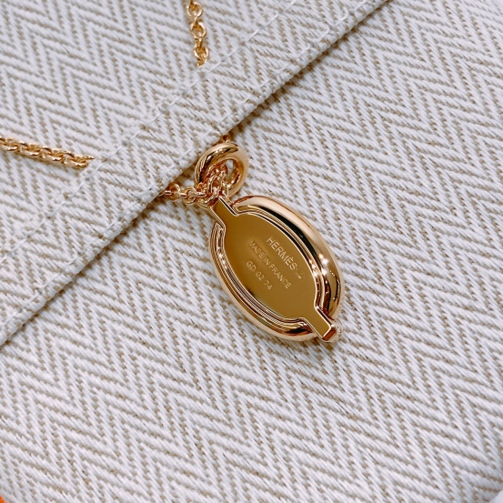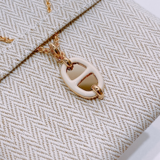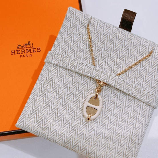 Hermes Mini Maillon Pendant Necklace Cream x GHW[New]