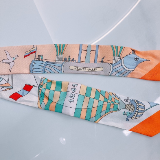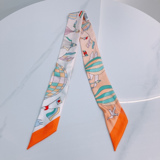 Hermes Twilly Les Folies du Ciel Silk Orange x Beige [Pre-Owned]