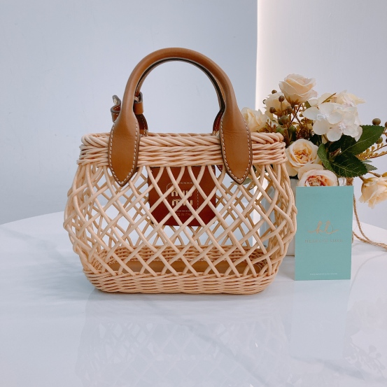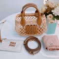 Miu Miu Woven Basket Handbag Wicker Brown [Pre-Owned]