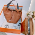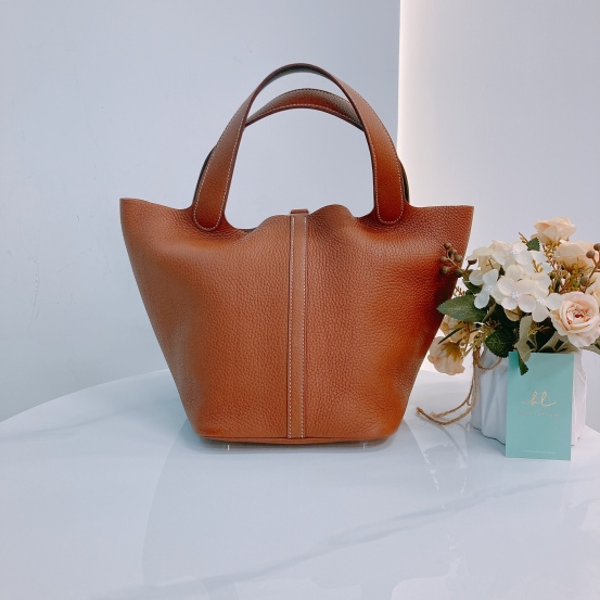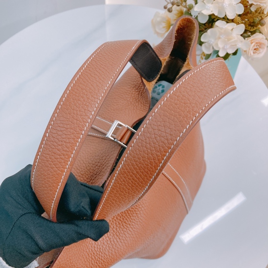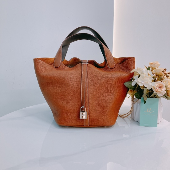 Hermes Picotin 22 Clemence Gold and Black x PHW [Pre-Owned]