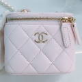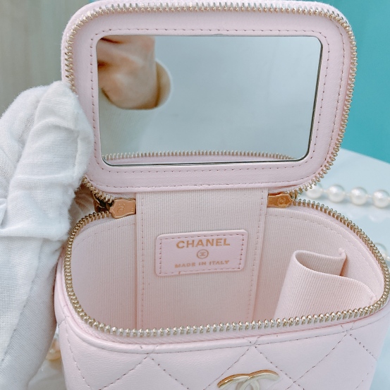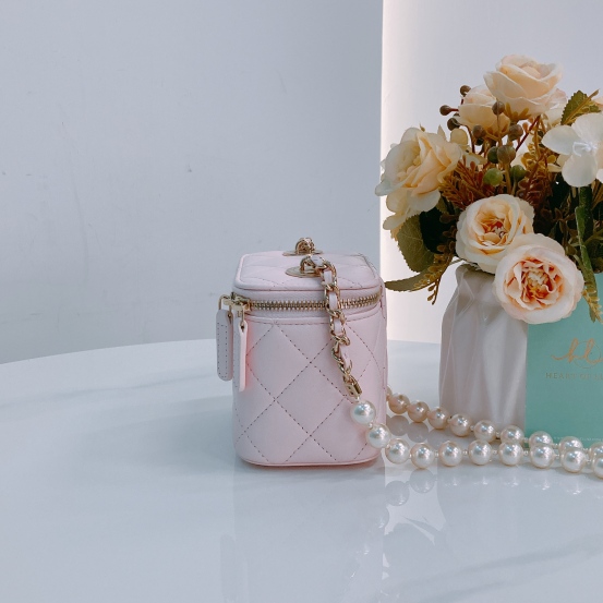 Chanel Vanity Case Mini Lambskin With Pearl Chain Pink x GHW [Pre-Owned]