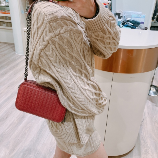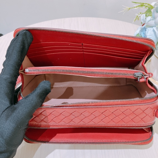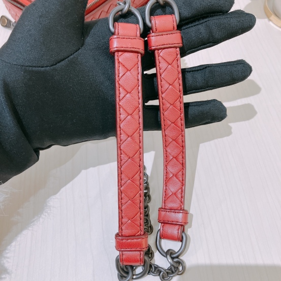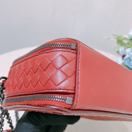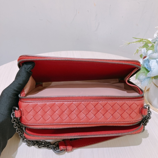 Bottega Veneta Double Zip Chain Crossbody Bag Intrecciato Nappa Red [Pre-Owned]