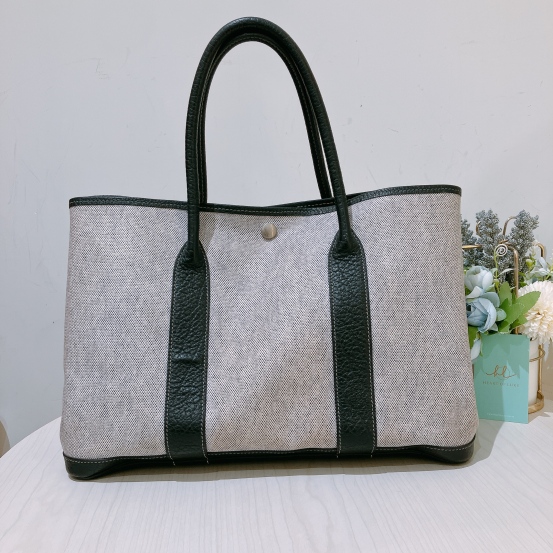 Hermes Garden Party 36 Tote Bag Canvas Noir x Grey