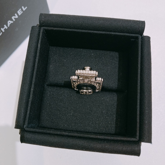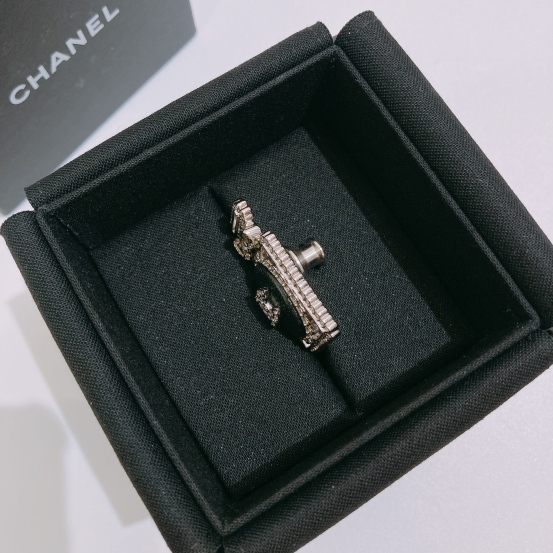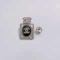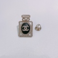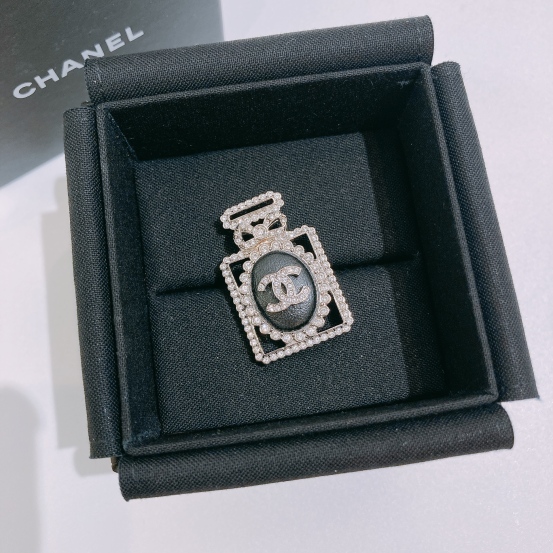 Chanel Perfume Logo Brooch Black Lambskin Crystal x PHW[Pre-Owned]