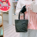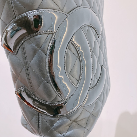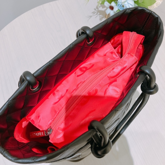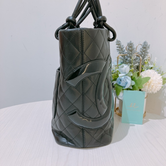 Chanel Vintage Cambon Line Tote Bag Calfskin Black