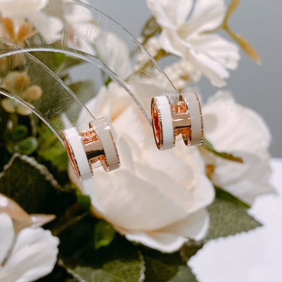 Hermes Mini Pop H Earrings Marron Glace/Blanc x RGHW[New]
