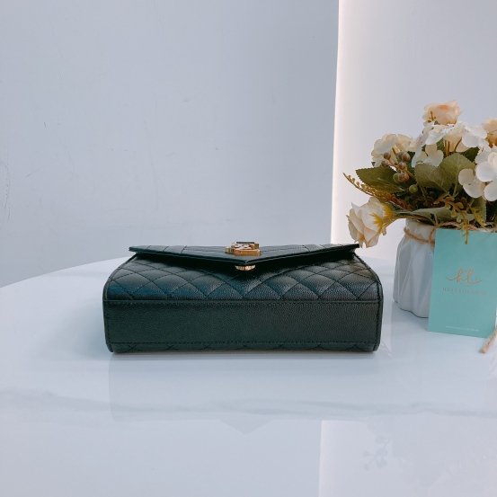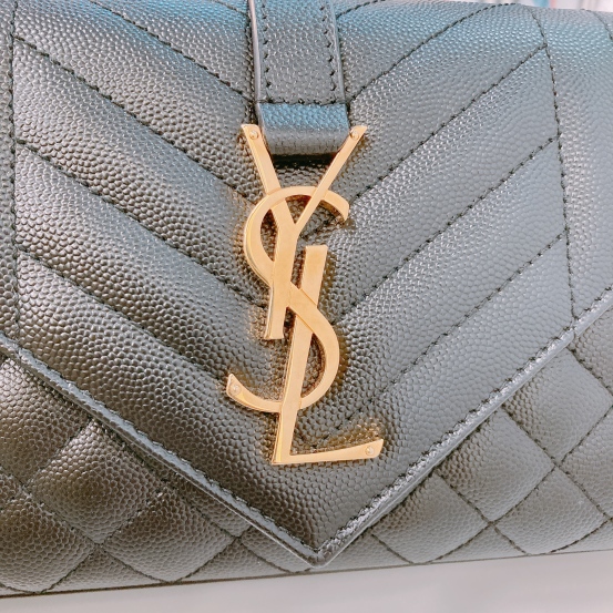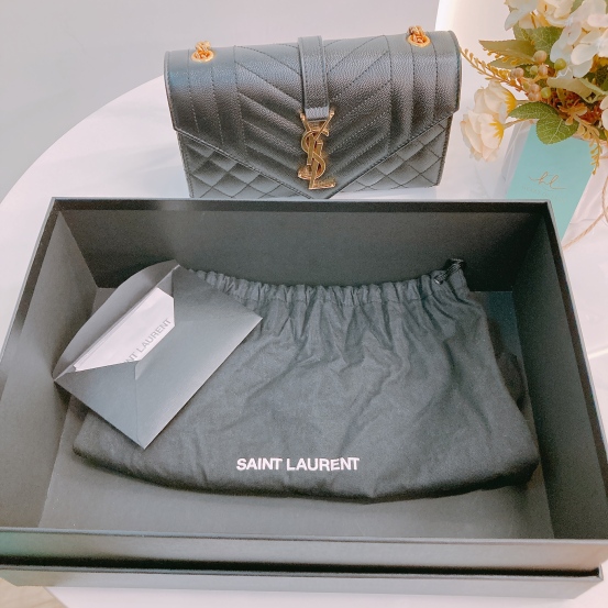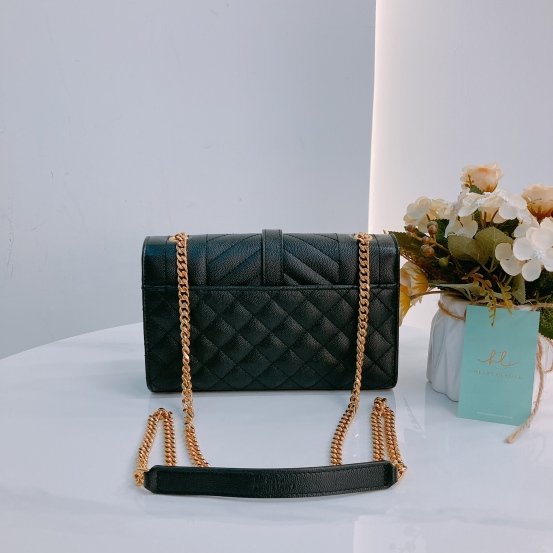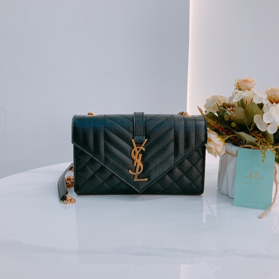 Saint Laurent YSL Envelope Medium Grained Calfskin Black x GHW [Pre-Owned]