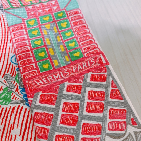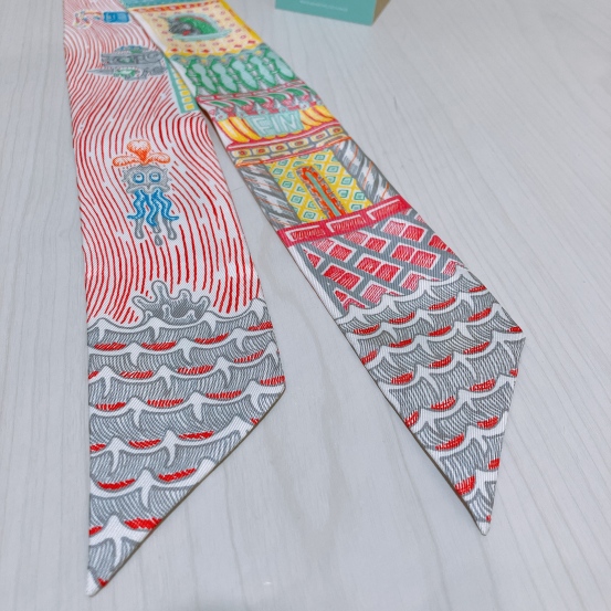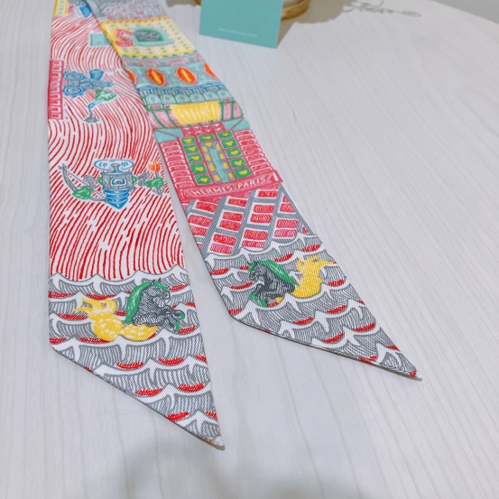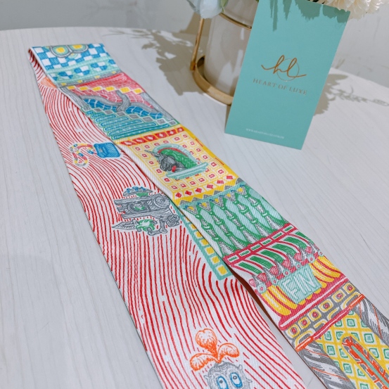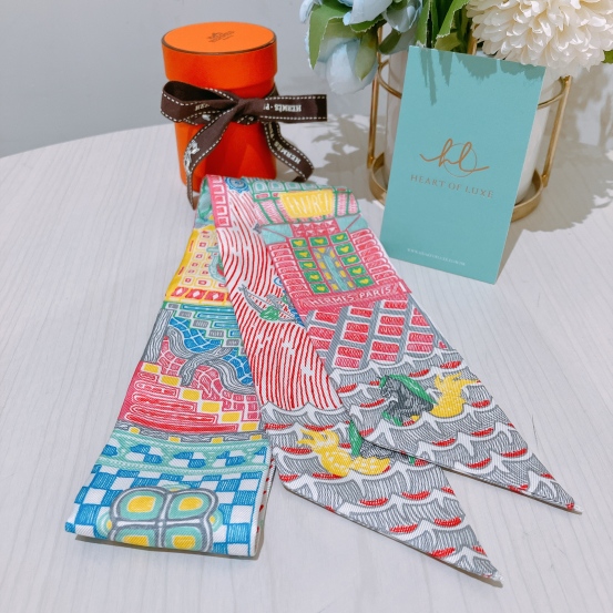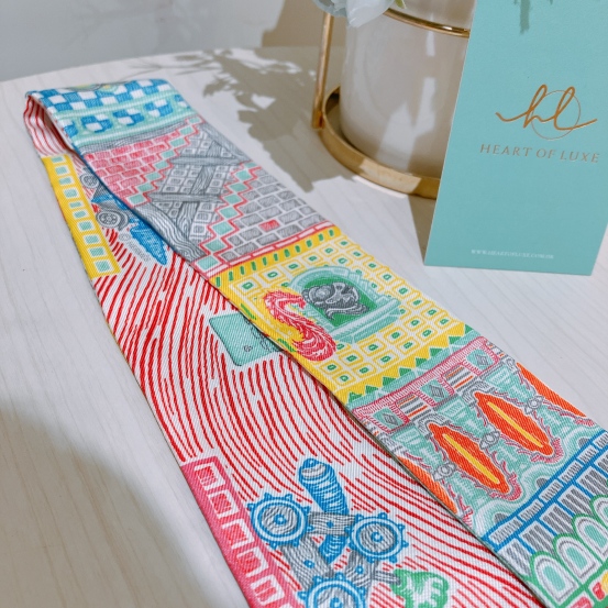 Hermes Rose Vig Bleu Vert Amande Silk Super Quest Twilly [Pre-Owned]