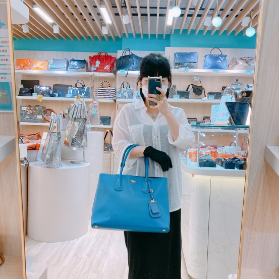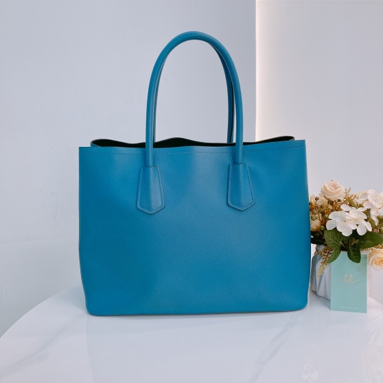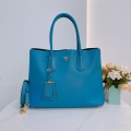 Prada Saffiano Double Bag Calfskin Blue x GHW [Pre-Owned]
