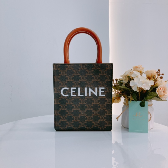 Celine Vertical Cabas Tote Mini Canvas Triomphe Brown [Pre-Owned]