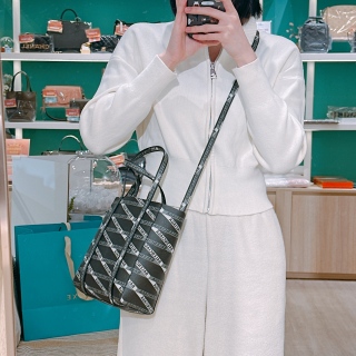 Balenciaga Allover Logo Tote Bag Black x PHW[Unused]