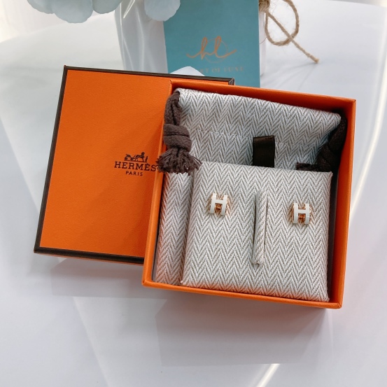 Hermes Mini Pop H Earrings Blanc x RGHW [New]