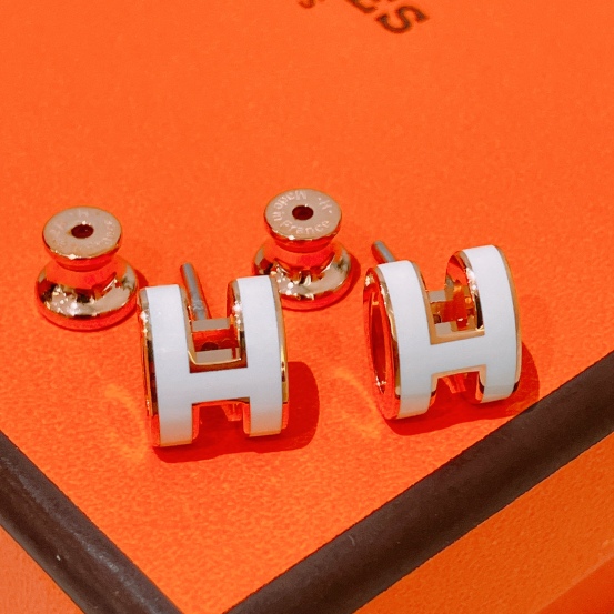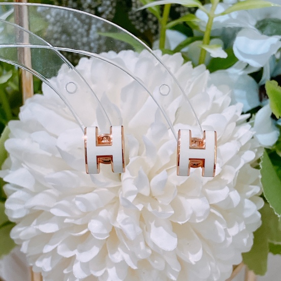 Hermes Mini Pop H Earrings Blanc x RGHW [New]