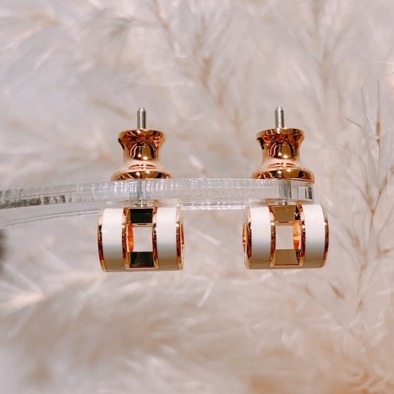 Hermes Mini Pop H Earrings Blanc x RGHW[New]
