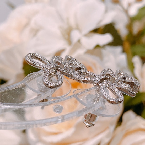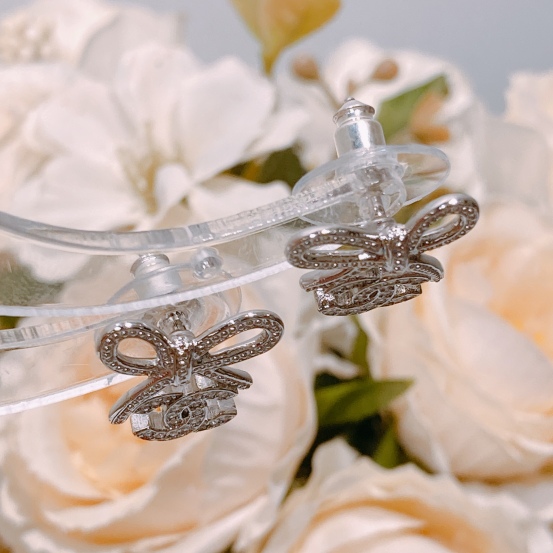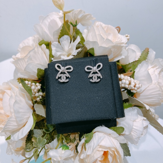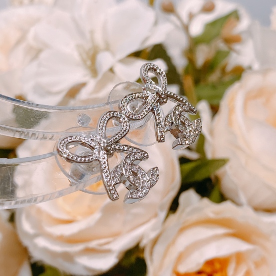 Chanel 25K Bow and CC Logo Earrings Crystal x PHW[New]