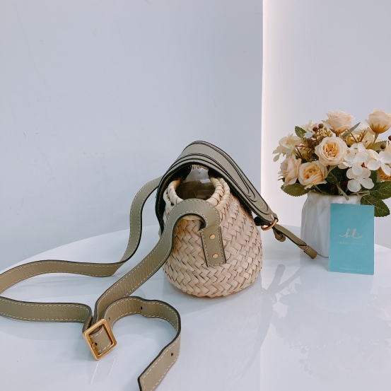 Chloe Marcie Basket Crossbody Neutral x GHW Raffia [Unused]