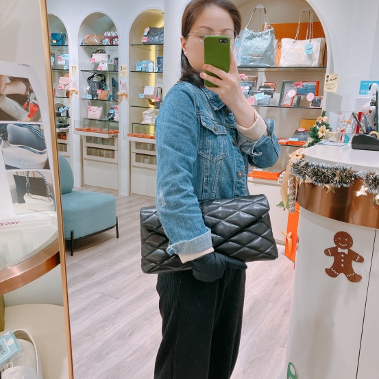 Saint Laurent Puffer Envelope Clutch Bag Black in Quilted Lambskin Leather[Pre-Owned]