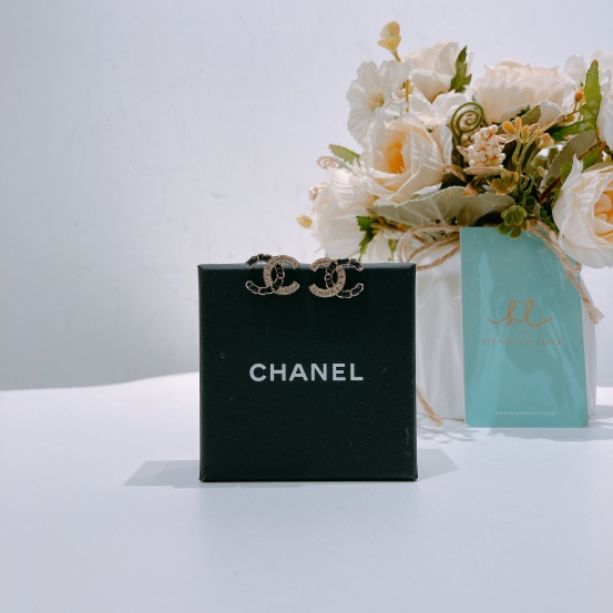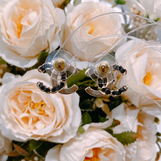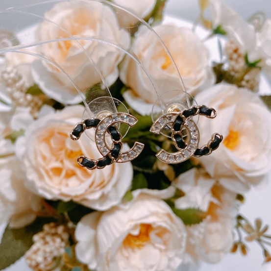 Chanel 1.6cm CC Logo Earrings Black Leather/Crystal x GHW[New]