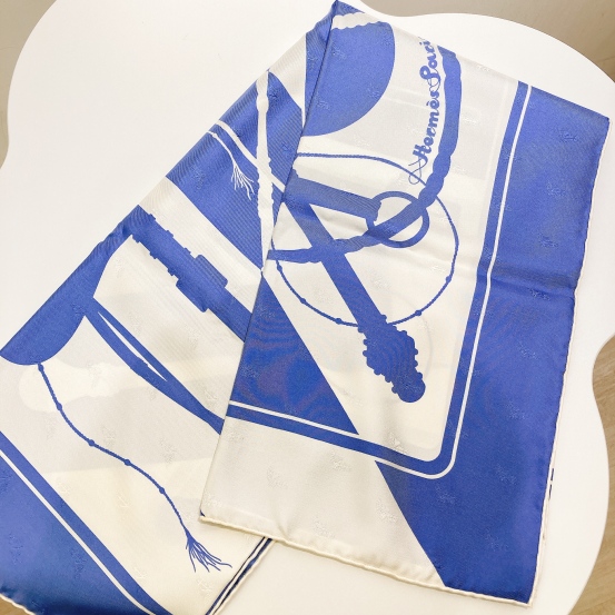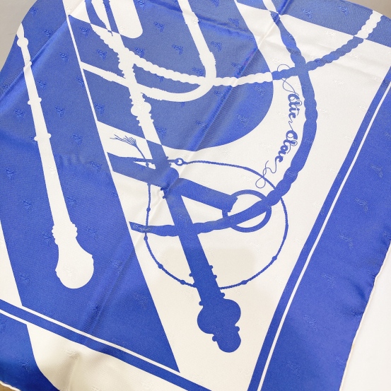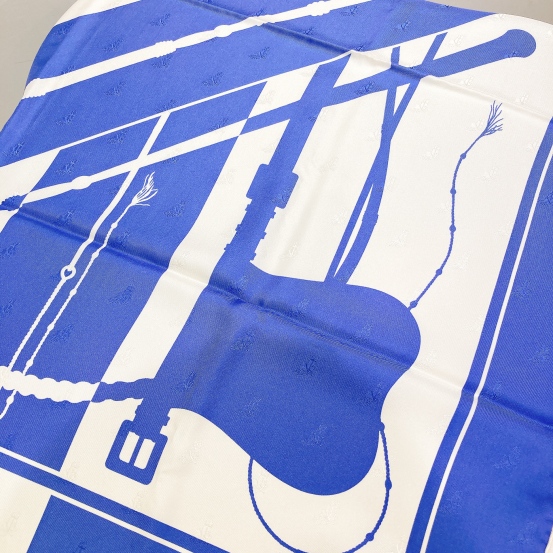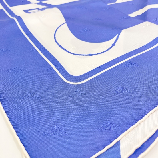 Hermes Clic Clac Scarf 90 x 90cm Slik Blue x White[Pre-Owned]