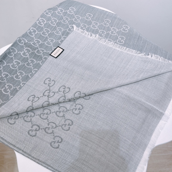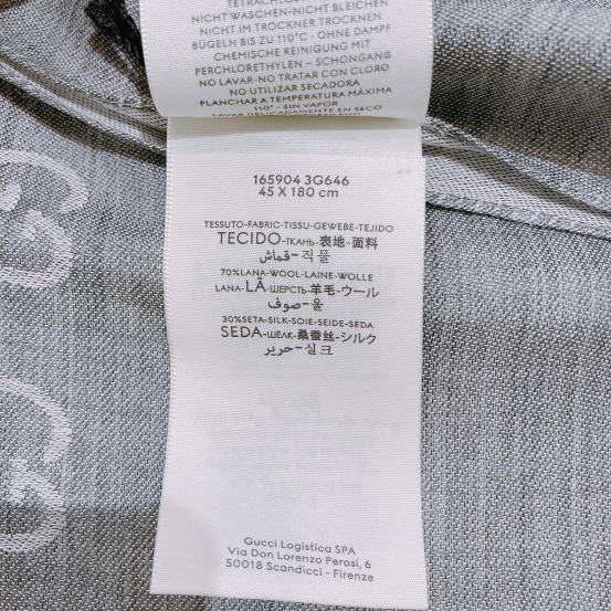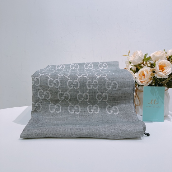 Gucci Scarf GG Supreme Grey x White Wool 45x180cm[New]