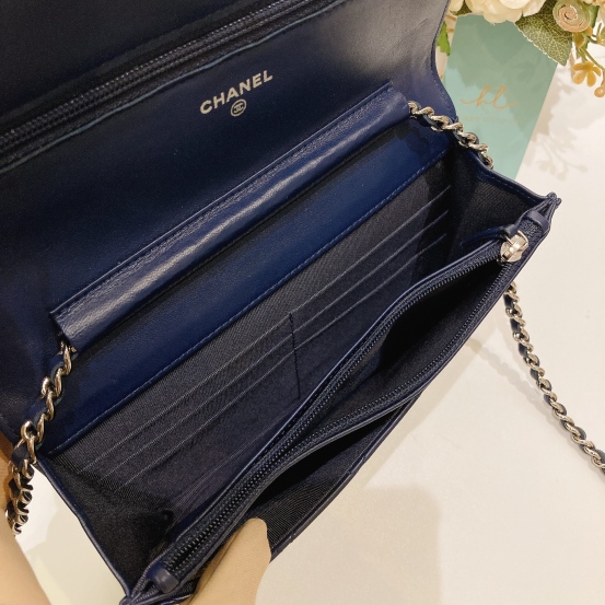 Chanel Wallet On Chain Lambskin Blue x PHW [Pre-Owned]