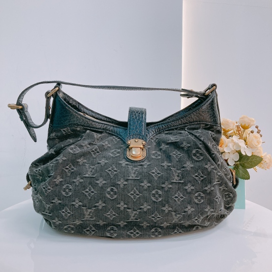 Louis Vuitton Slightly Shoulder Denim Black x GHW [Pre-Owned]