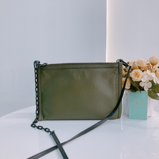 Louis Vuitton Shadow Double Flat Messenger Calfskin Black and Green x PHW [Pre-Owned]