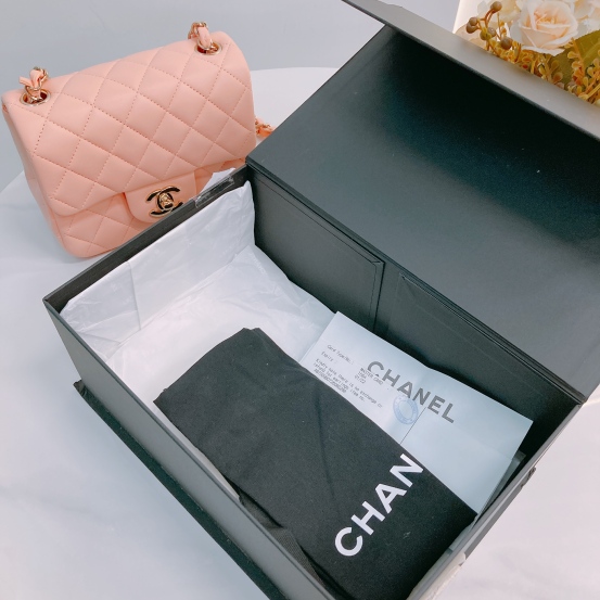 1. 首頁 / Chanel Classic Flap Mini Square Lambskin Nude x GHW [Unused]