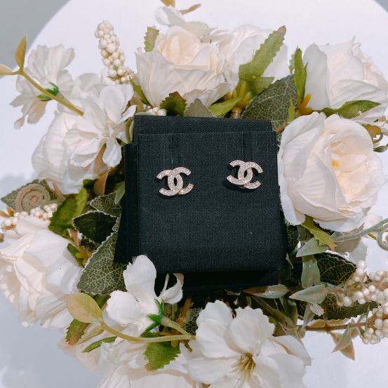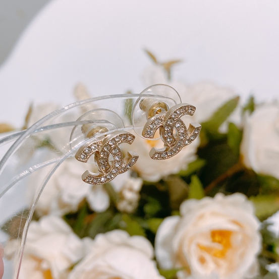 Chanel Classic CC Logo 1.2cm Earrings Crystal x GHW[New]