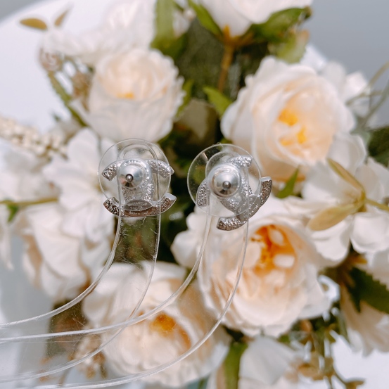 Chanel Classic CC Logo 1.2cm Earrings Crystal x PHW [New]
