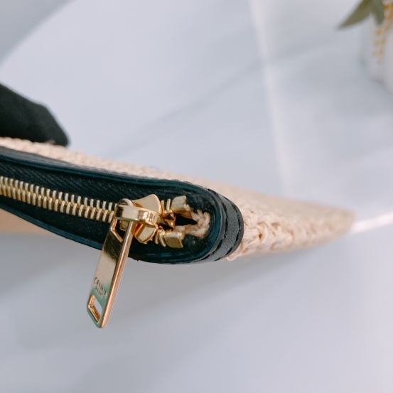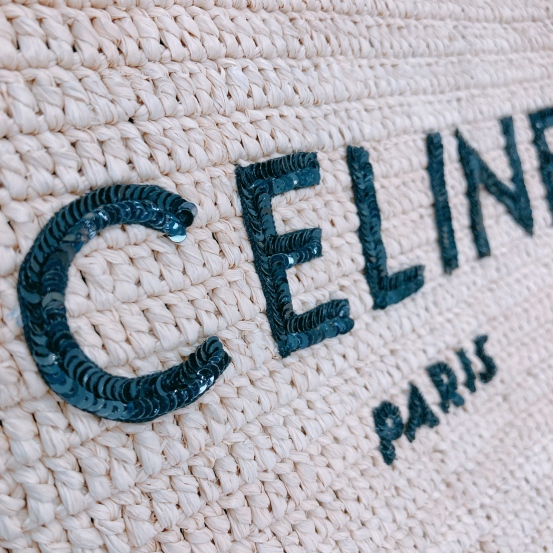 Celine Clutch 35cm Raffia ,Calfskin and Sequins Beige x Black x GHW [Pre-Owned]